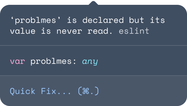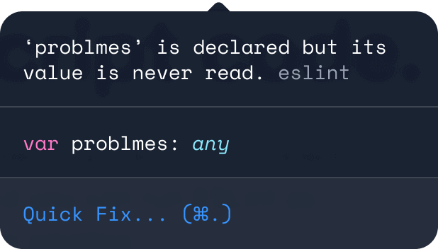 ESLint 通过静态分析代码以快速发现问题。大多数文本编辑器都内置了 ESLint 支持, 但你也可以在持续集成管道中运行 ESLint。